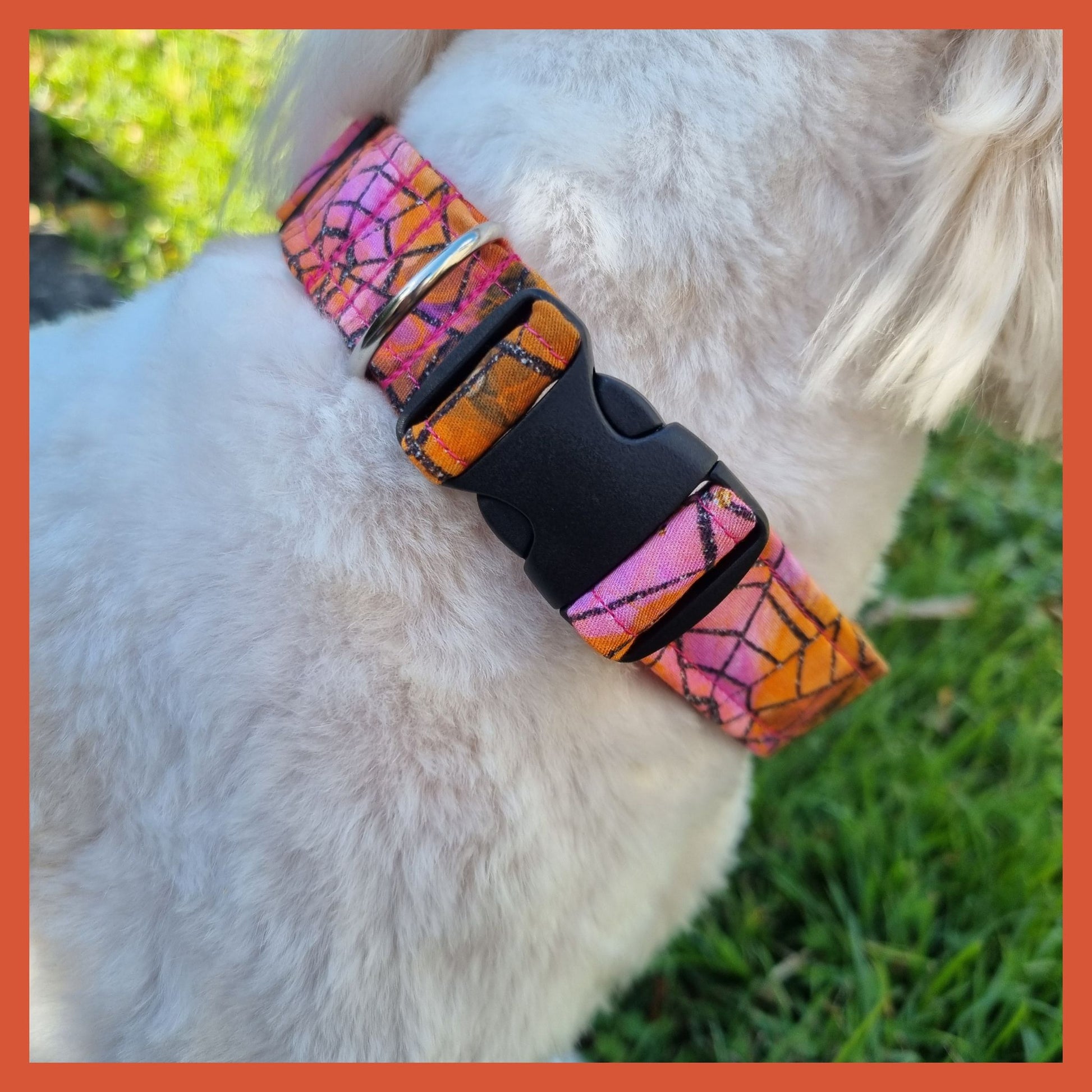 Introducing our Halloween Spooky Magic dog collar—the perfect mix of style and durability for your pup this spooky season! Crafted with a soft, fabric-covered exterior and strong polyester webbing, this collar offers comfort and strength (up to 680kg). The adjustable strap and secure buckle ensure a snug fit for all adventures. Available in three sizes, it's both a stylish and practical accessory for your four-legged friend.