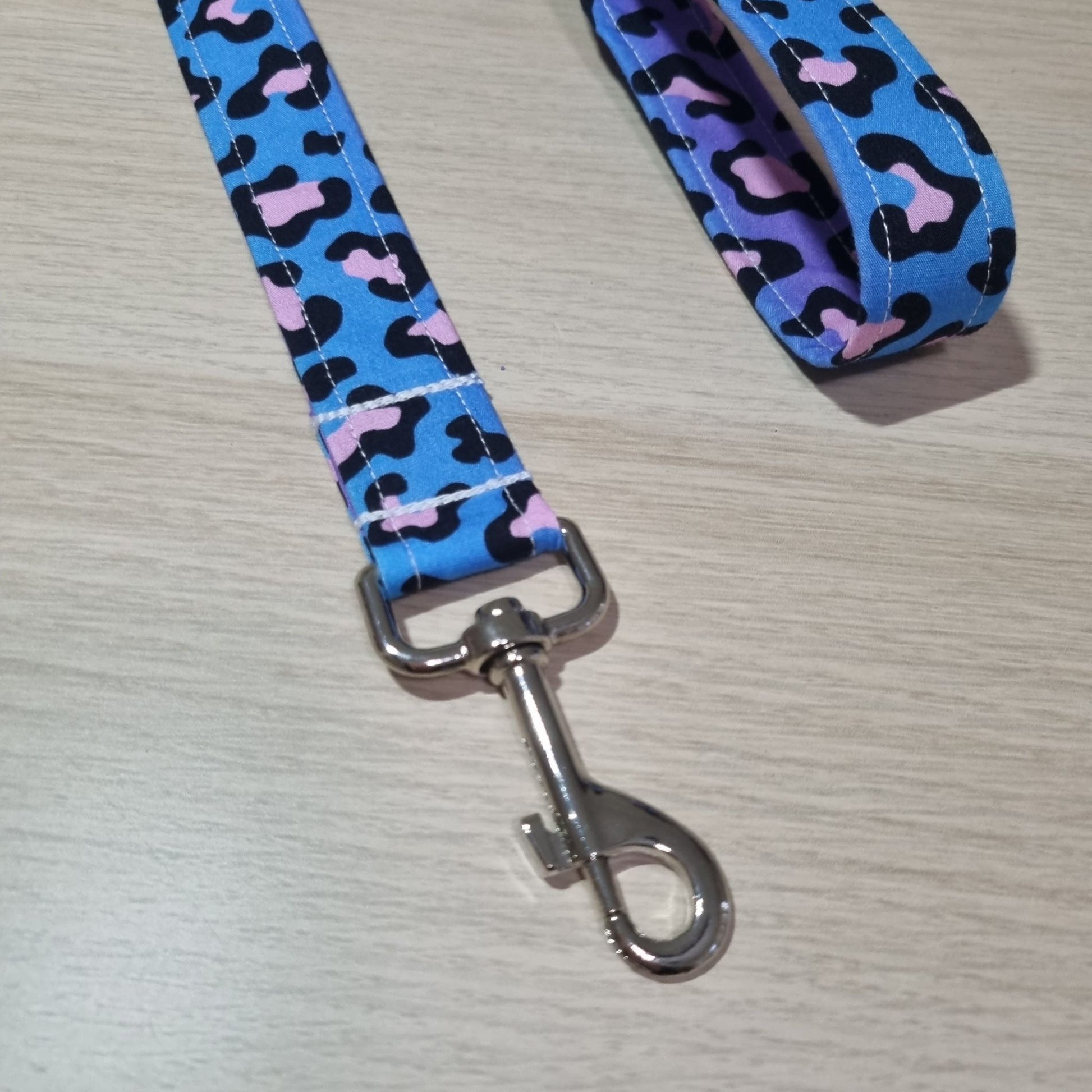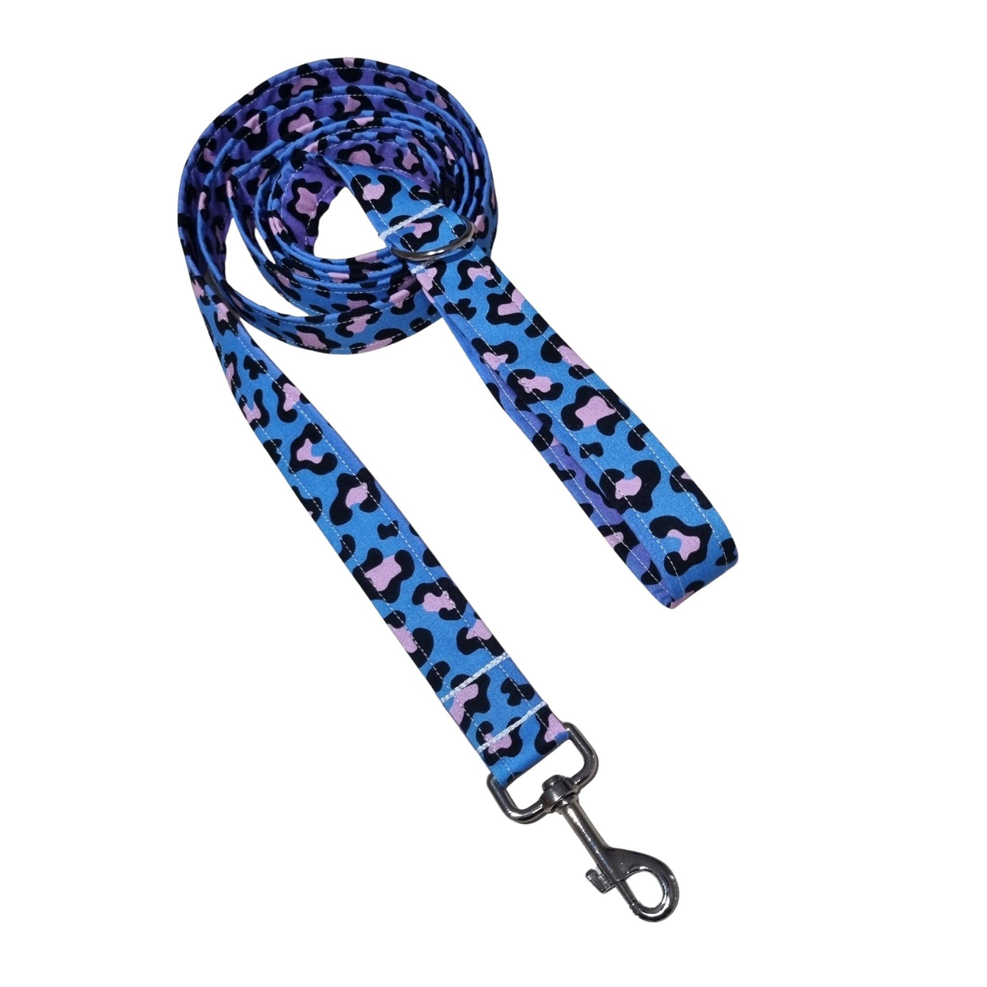 The Rainbow Leopard Dog Leash combines style, comfort, and durability. Featuring a soft fabric exterior for a comfortable grip and polyester webbing with a 680kg strength rating, it ensures lasting use and security. The sturdy hardware and secure clasp ensures that the leash stay securely attached to your dog's harness or collar. With a colourful leopard print design finished with a silver clip & d-ring, this leash is as bold & bright as it is functional, making walks with your furry friend even more enjoyable.